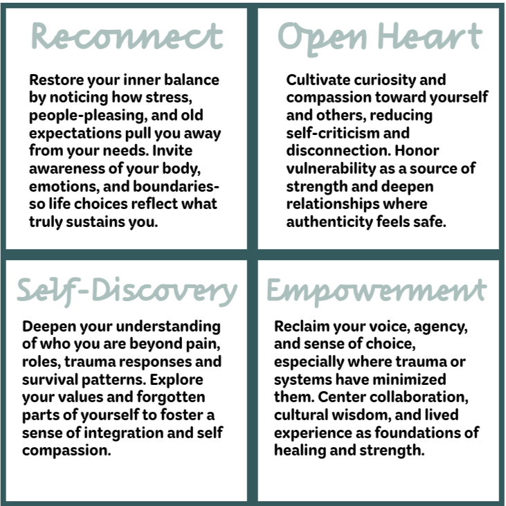 Our therapeutic approach is guided by four core values that create a path toward healing and fulfillment.